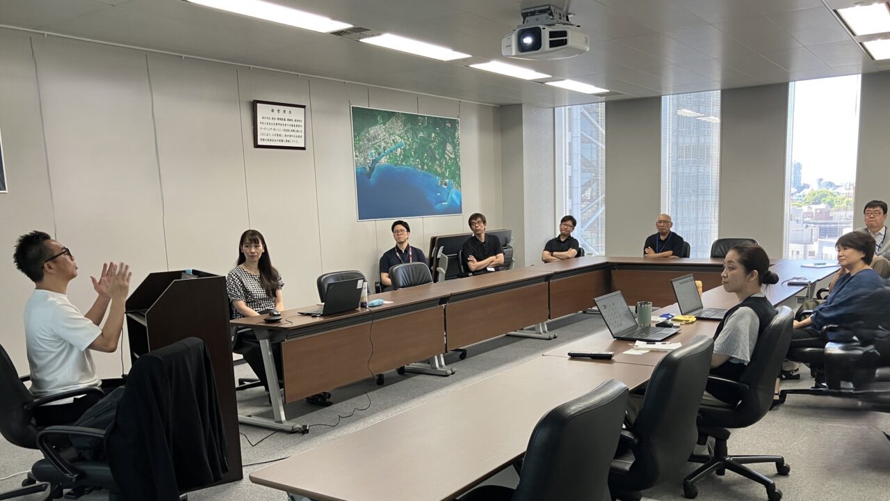 本社では対面、北海道事業所とはオンライン接続のハイブリッド形式。